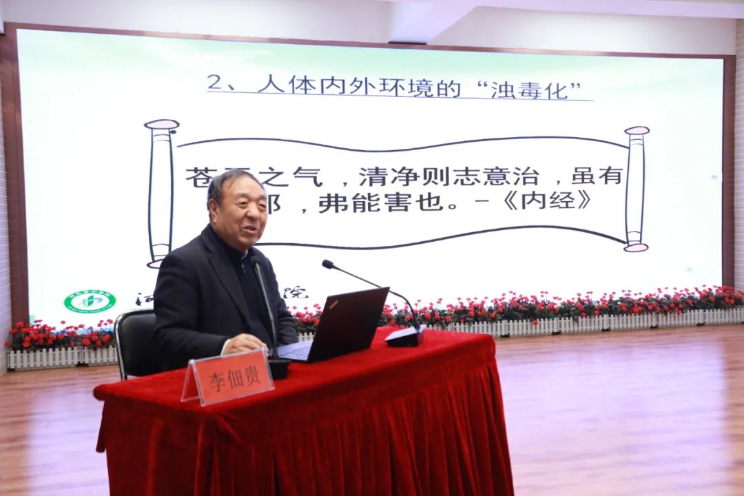 仪式结束后,国医大师李佃贵还为医护人员带来了一场精彩的学术讲座 ——《中医浊毒理论创新与实践》。在讲座中,李佃贵大师凭借深厚的学术造诣和丰富的临床经验,系统地介绍了中医浊毒理论在临床中的应用。他的讲解思路清晰、深入浅出,用生动的语言将晦涩的中医理论与实际病例相结合,让在场的每一位听众都深受启发。讲座现场气氛热烈,掌声不断,大家纷纷表示收获颇丰。