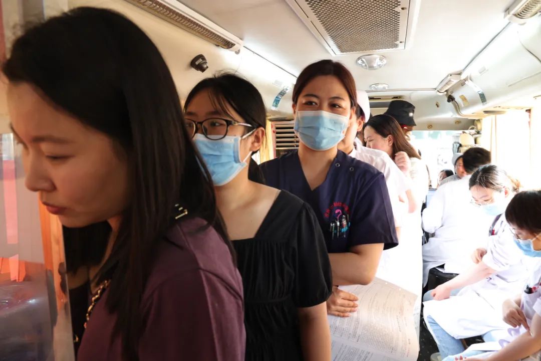 献血活动开始后,医务人员们填表、体检、化验、抽血,现场秩序井然。